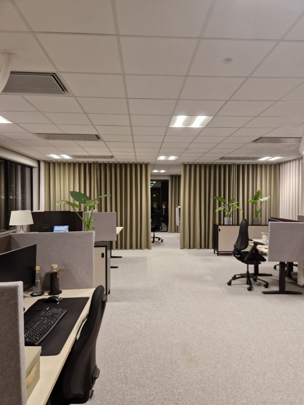Ljuddämpande draperier i kontorslandskap. Kund: Office IT-partner